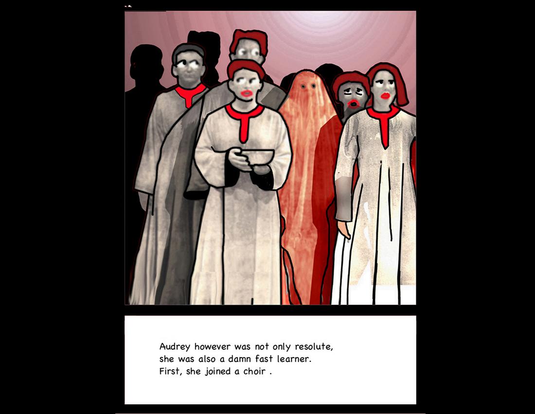 The Story of Audrey was published n 2006 and exhibited in the Segismundo y otros Mundos, in the Vinçon Gallery, Barcelona , and in “Mauvaises Compagnies“ “at the “Jim Haynes” Gallery Also shown and sold in Bookartbookshop London and Bookie Wookie, Amsterdam