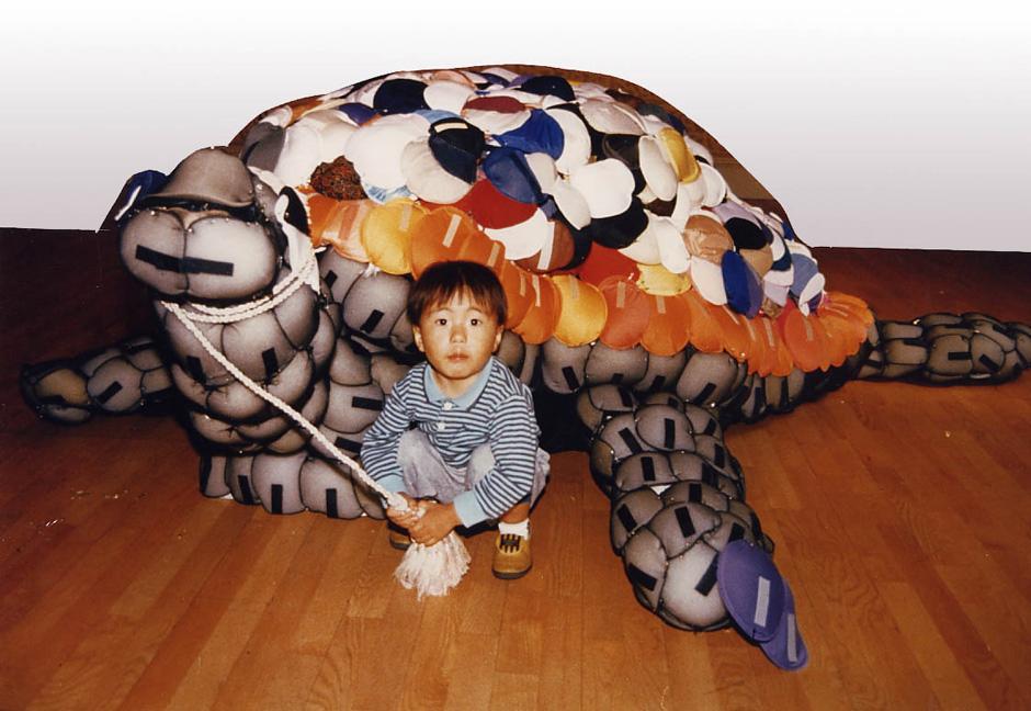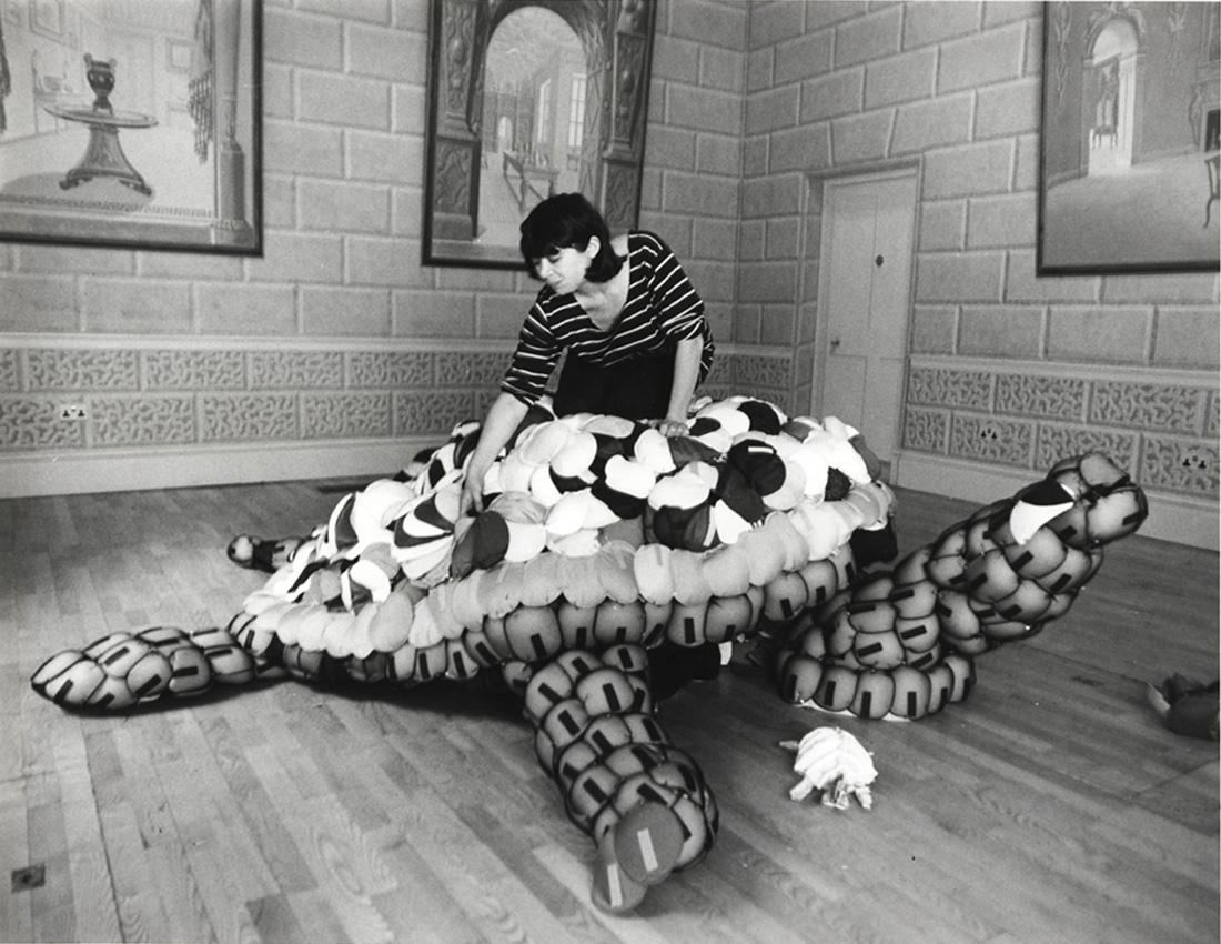 At the V & A: Operation Shoulder Power 1990.  Giant tortoise made with shoulder pads as part of the “Collecting for the Future” exhibition